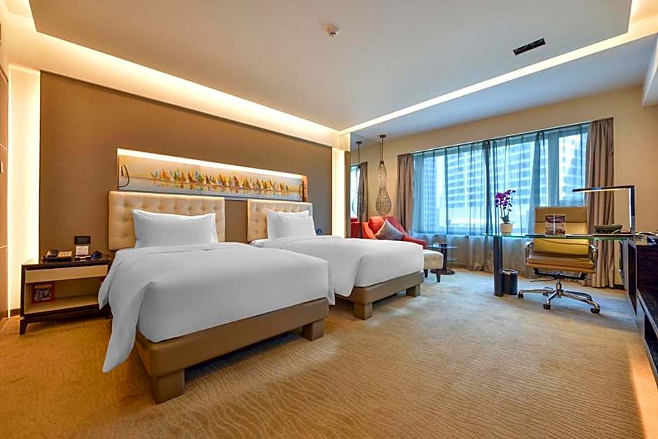 The spacious air-conditioned double room provides a flat-screen TV with cable channels, soundproof walls, a mini-bar, executive lounge access as well as city views. The unit offers 1 bed.